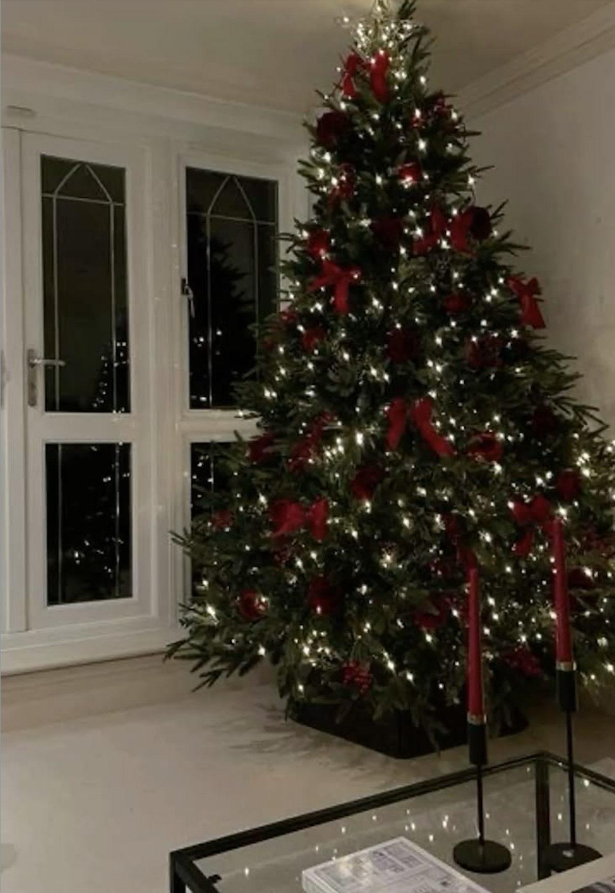 Sometimes simplicity speaks the loudest. These lush green Christmas trees are adorned with delicate cranberry details and surrounded by glowing burgundy candles, creating a natural yet luxurious feel. It’s an understated take on the burgundy Christmas trend—earthy, elegant, and effortlessly timeless.
