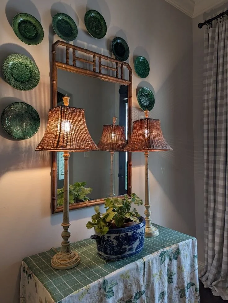 Cabbage plates can also be used to beautifully frame architectural elements like mirrors. Arranging the plates around a mirror creates a charming focal point that feels both decorative and intentional. The rich green tones add depth and texture while complementing natural materials like wicker lamps, bamboo frames, and vintage textiles.
