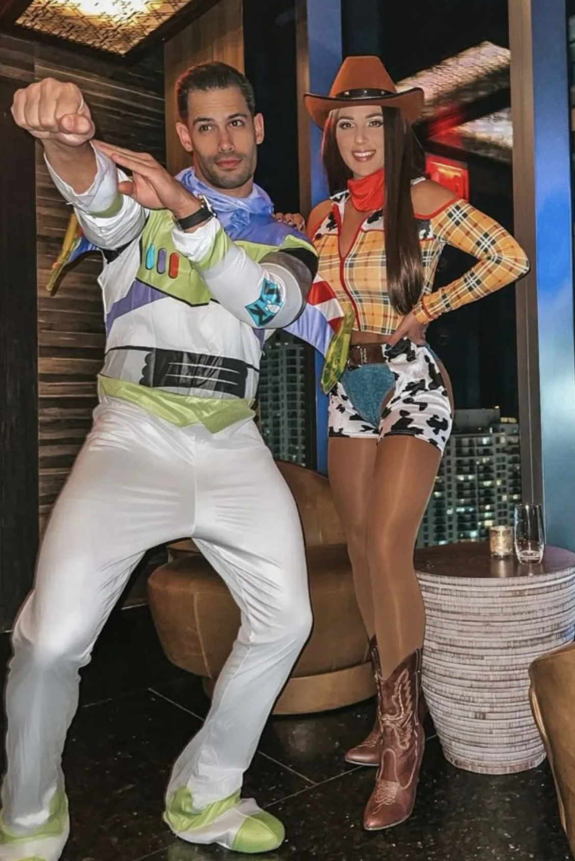 Don’t skip the little props—a lasso for Jessie or a catchphrase like “To infinity and beyond!” for Buzz. The magic of this couples costume is the contrast: his futuristic vibe paired with her old-school Western style, coming together for a duo that’s fun, nostalgic, and perfect for photos.