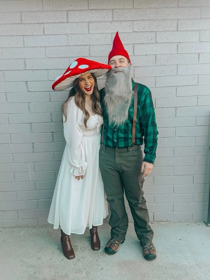 For a quirky and charming costume idea, pair up as a whimsical mushroom and a classic garden gnome.