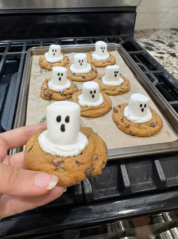 Adorn your cookies with squishy marshmellows, decorated with eyes and a mouth with chocolate. These are sure to be delicious on top of your favorite chocolate chip cookie.