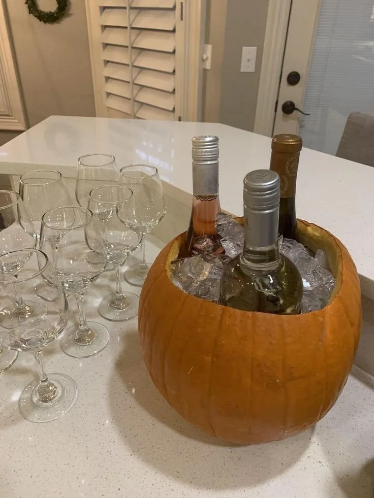 Talk about an easy way to elevate your Halloween entertaining! This pumpkin wine cooler is not only functional — it’s a full-on conversation piece. Simply hollow out a large pumpkin, line it with plastic or a bowl, and fill it with ice. Add a few bottles of wine, cider, or sparkling water, and you’ve got the chicest drink station on the block. It’s festive, simple, and totally Instagram-worthy.