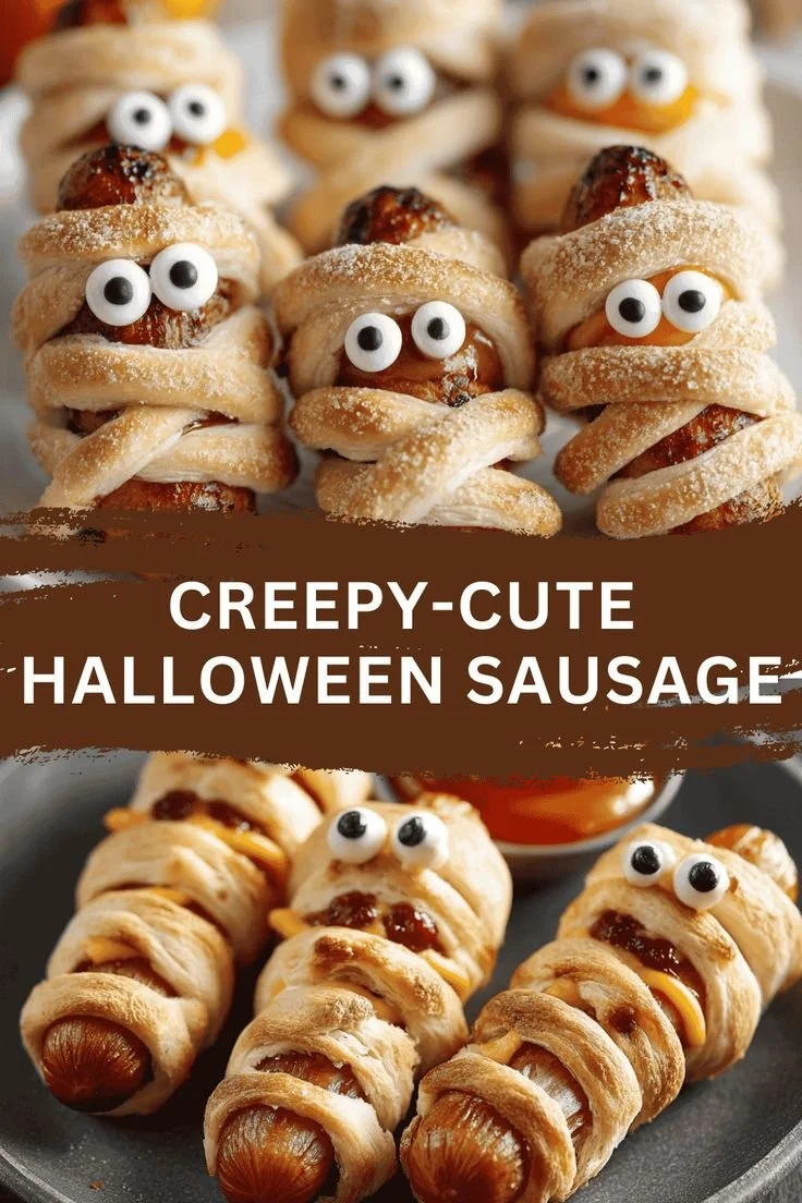 These mummy sausages are the ultimate spooky snack — simple, savory, and so much fun to make. Just wrap mini sausages or hot dogs in thin strips of crescent dough, bake until golden, and add candy eyes once they’ve cooled. They come out looking adorably eerie and taste buttery, flaky, and delicious. Perfect for Halloween parties, movie nights, or after trick-or-treating.