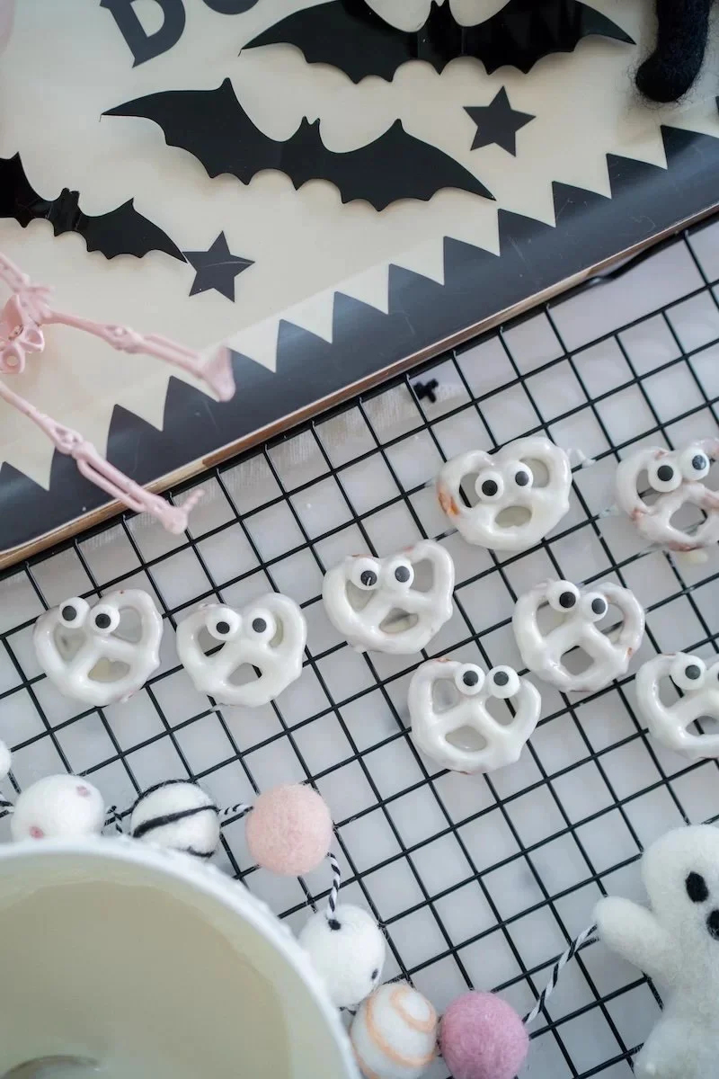 23 | 👻 Pretzel Ghosts (White Chocolate-Dipped Pretzels)