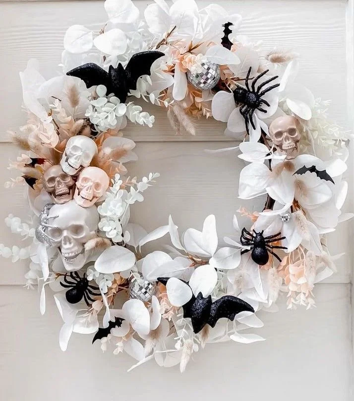 Think of your front door as the “energy portal” of your home — it’s the first impression your space makes to the world. Hanging a wreath that feels both festive and intentional calls in that playful, abundant energy of the season while showing off your personality. Whether you’re all about elegant gothic glam, farmhouse charm, or minimalist magic, a handmade wreath is the perfect way to say “welcome, spooky season.”
