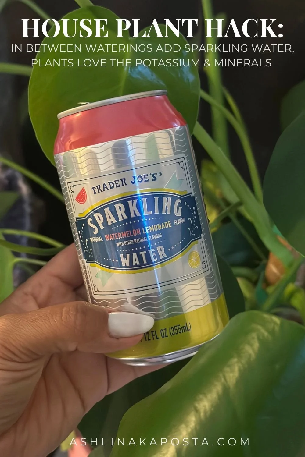 2. I give them ‘sparkling’ treatment. I look at my plants like they are my pets, so I like to treat them to the same luxurious treatment as I would give any little house pet. Sparkling water is no exception. So, one day I found a half drunk can of sparkling water that was Romans and I didn’t want to waste it, so I poured the rest in one of my plants. Days later, I came across a Tik Tok that said plants love the potassium and other minerals found in most sparkling waters. And these minerals, when mixed with regular water can actually be growth promoters for your plants.