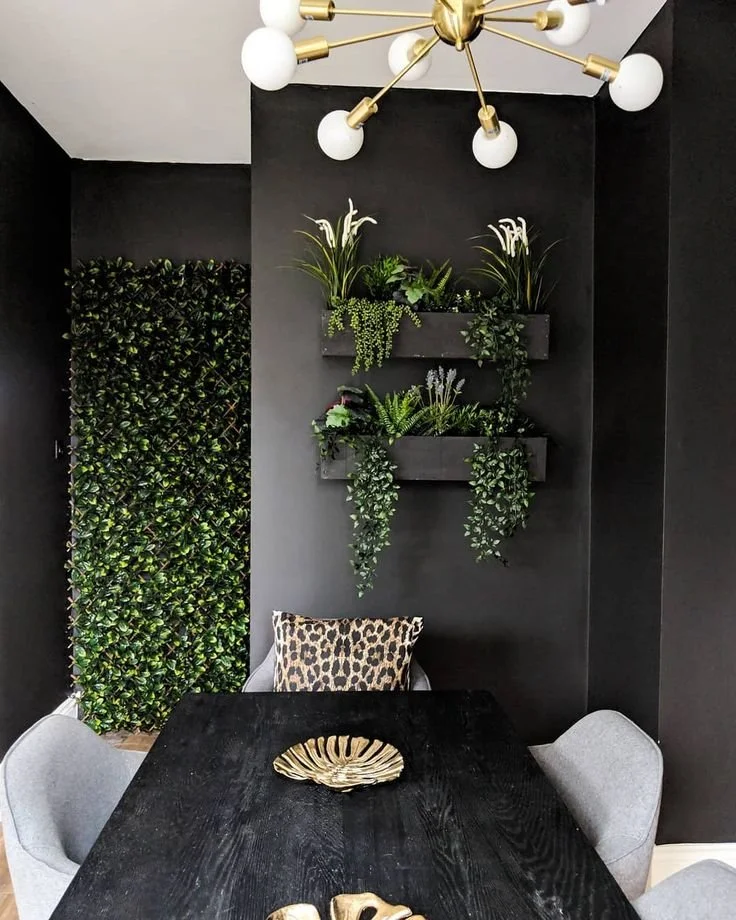 Pair tall trailing plants like pothos or philodendron with compact varieties like succulents or ZZ plants to create natural movement and flow.