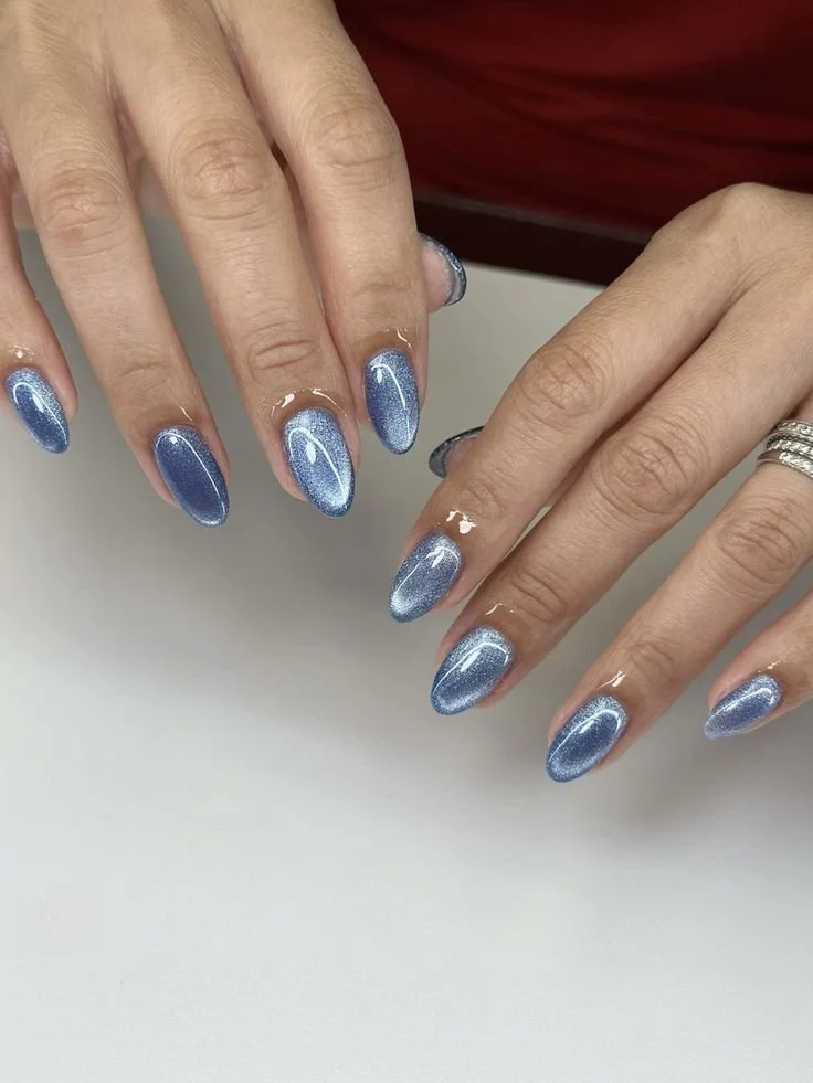 While cat eye polish looks beautiful on any nail length, certain shapes highlight the magnetic effect even more.