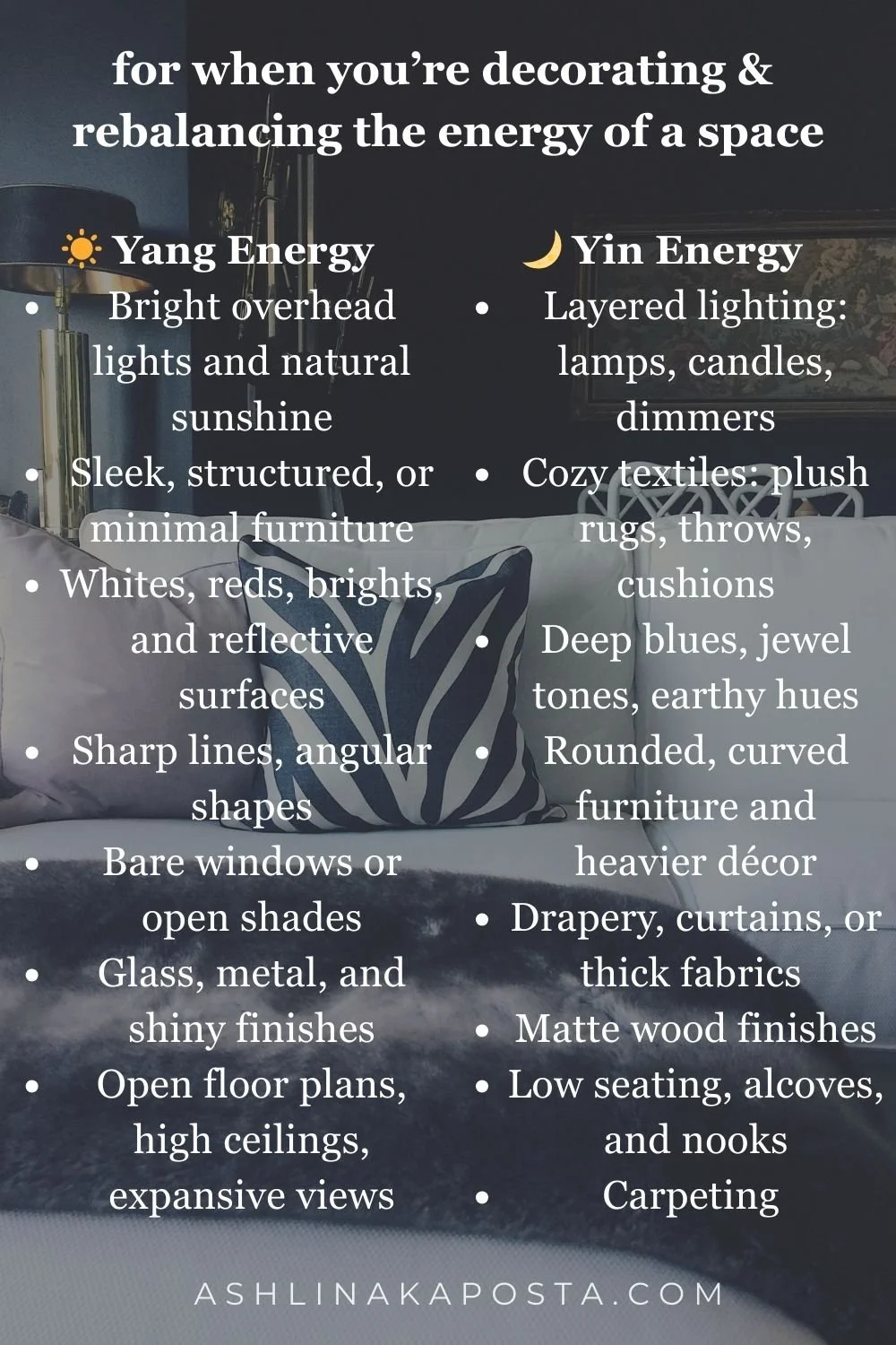 • Yin energy is the feminine force — soft, cool, calming, and nurturing. Think moonlight, cozy corners, and quiet moments of reflection.