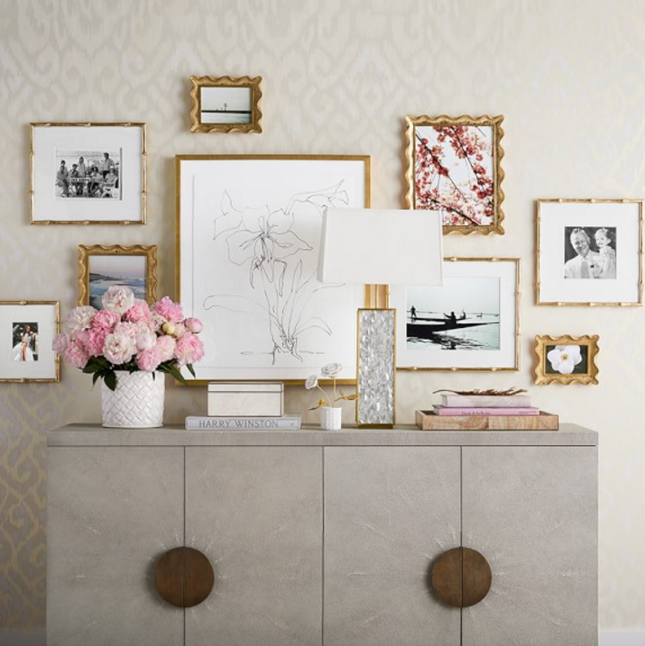 I also love the blush pink pillows, nude pillows and gold bamboo frames.