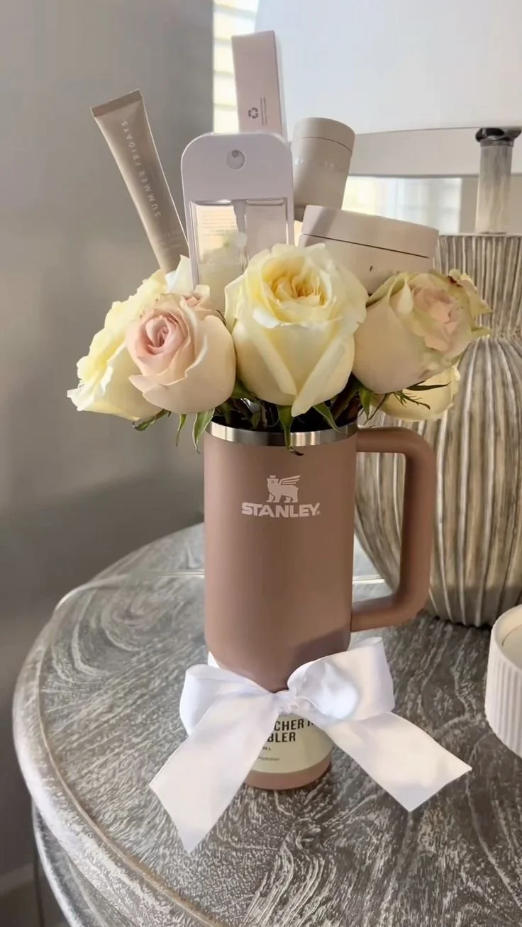 Style Tip: Anchor your basket with one luxury item (like jewelry or a designer beauty product) and then surround it with cozy touches. The ribbon detail around the basket makes it look instantly gift-ready and Pinterest-worthy.