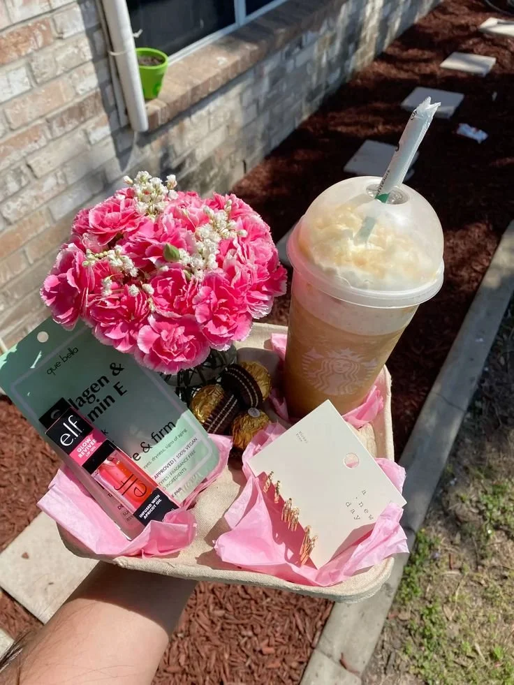 Style Tip: Keep the color palette consistent — pinks, whites, and black accents make the basket look cohesive and elevated. Adding a striped ribbon or bow instantly makes it feel gift-ready and Pinterest-perfect.