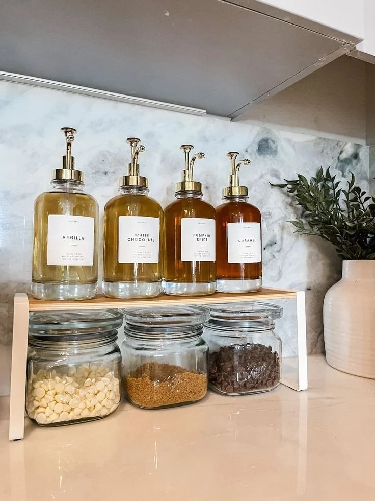 Add syrups of all different flavors and put them in matching pump jars to bring that Starbucks feeling right to your home.