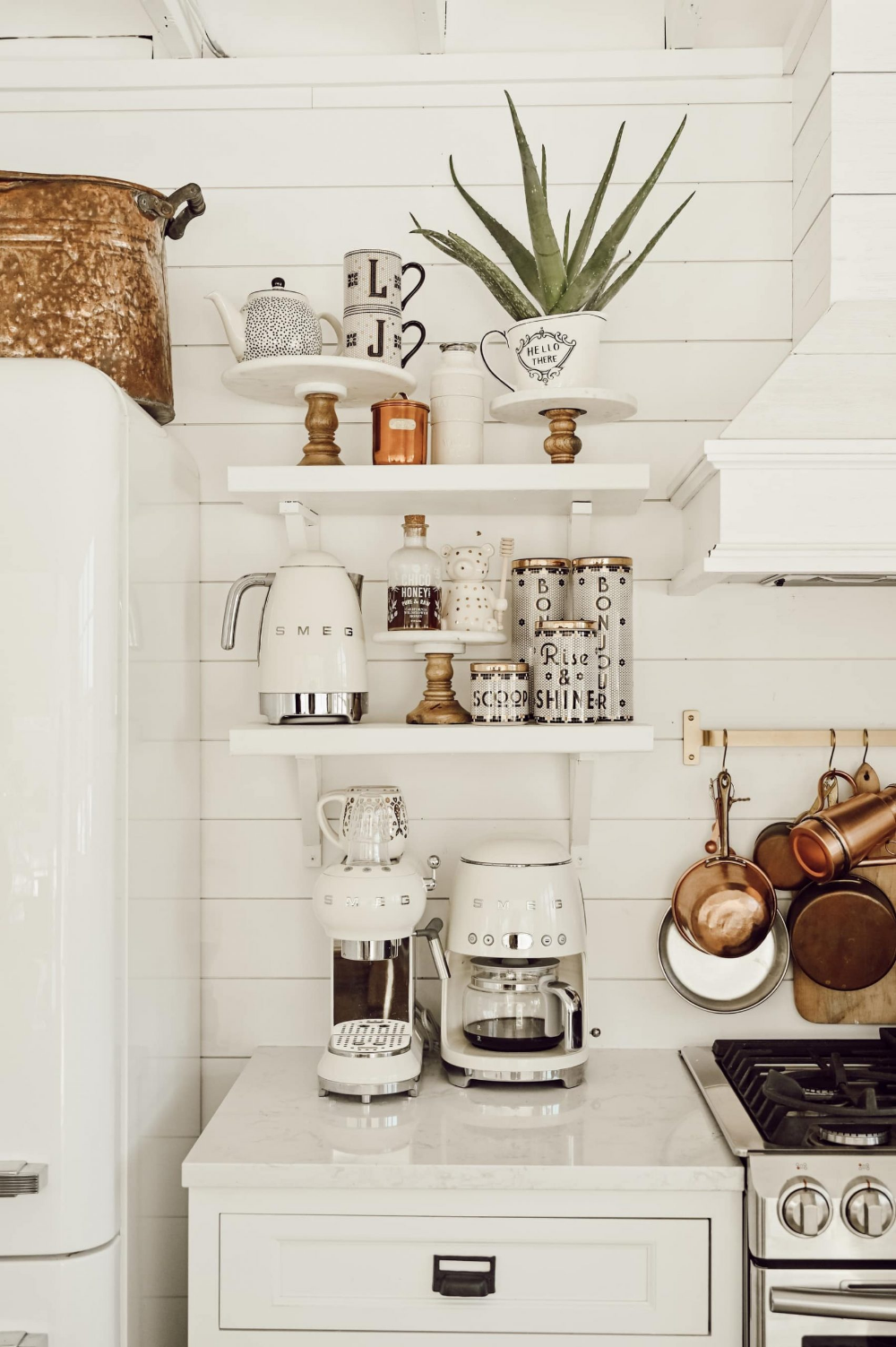 The Smeg coffee machine is the ultimate chic coffee bar accessory. It looks so beautiful with all of the white coffee essentials.