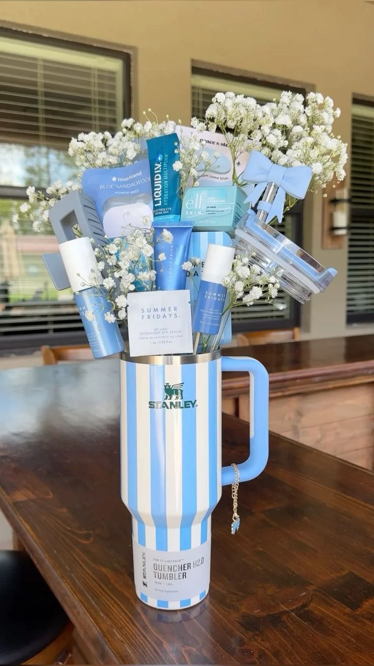 If you've been anywhere near TikTok or Pinterest lately, you already know: the stuffed Stanley cup gift is having a major moment — and honestly, it's not hard to see why. These gorgeous, color-coordinated gift baskets use a Stanley tumbler as the "vase," then fill it with beauty products, self-care goodies, snacks, and flowers to create something that looks like it came straight from a high-end boutique. The best part? You can pull one together for any occasion, any budget, and any personality.
