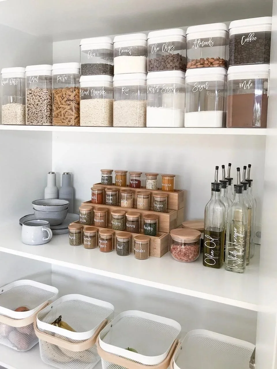 Stylish storage: Clear bins, chic baskets, and labeled containers elevate even the most practical spaces.
