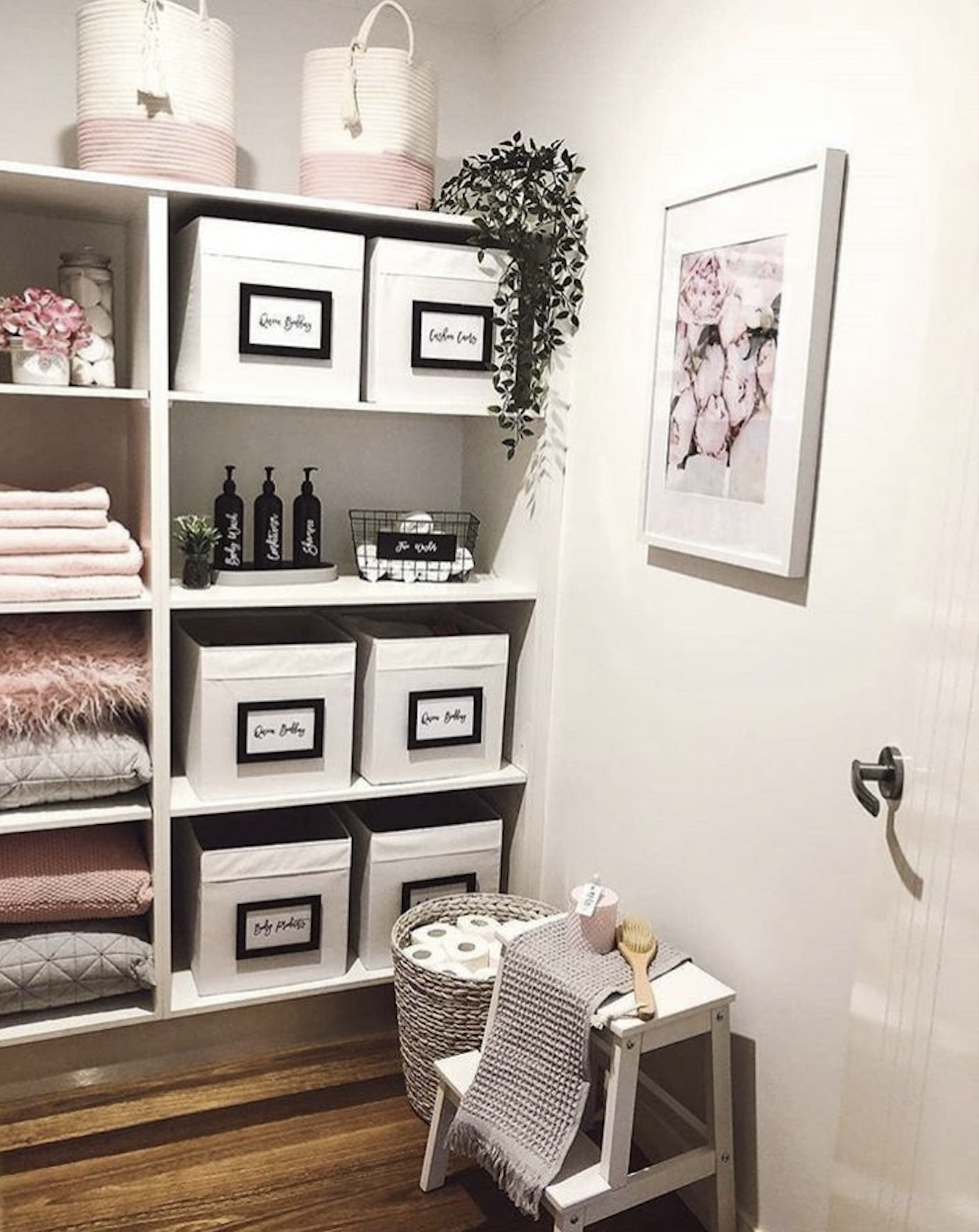 Use smaller baskets for washcloths or hand towels so they don’t get lost in bigger bins.