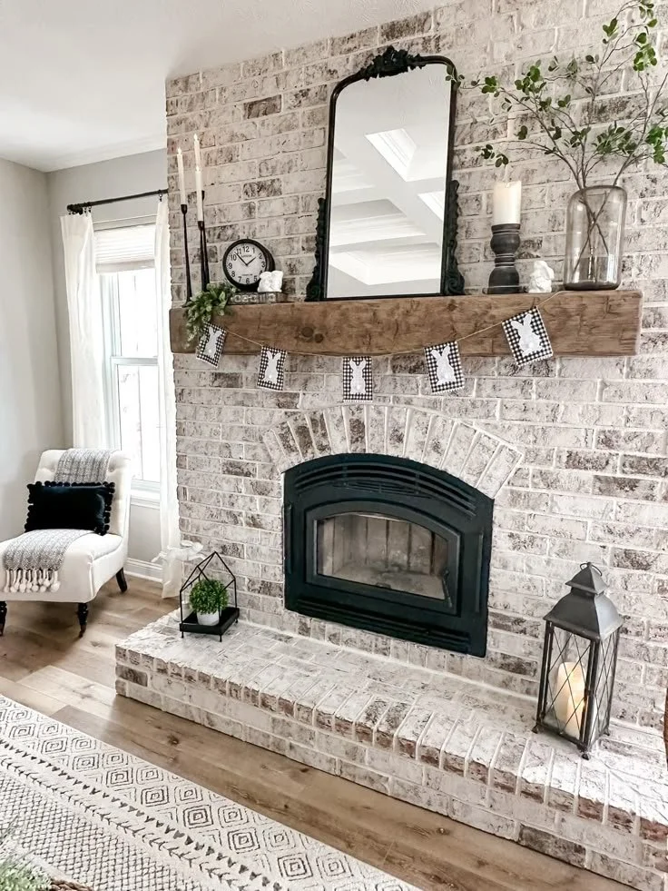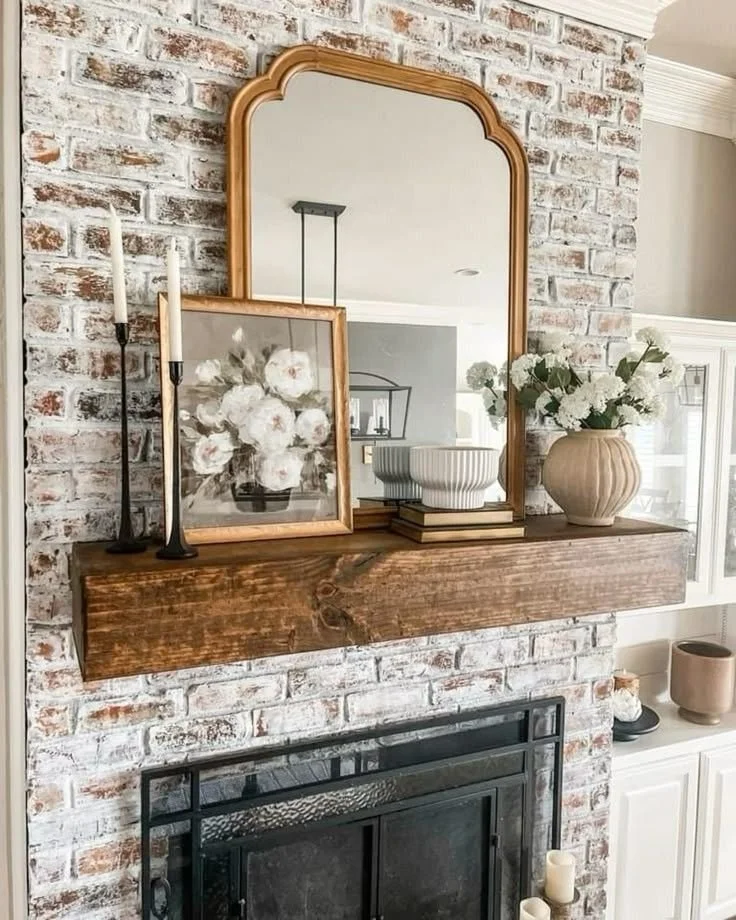 This is one of the most searched fireplace mantel decor ideas for small spaces because it expands the room visually.