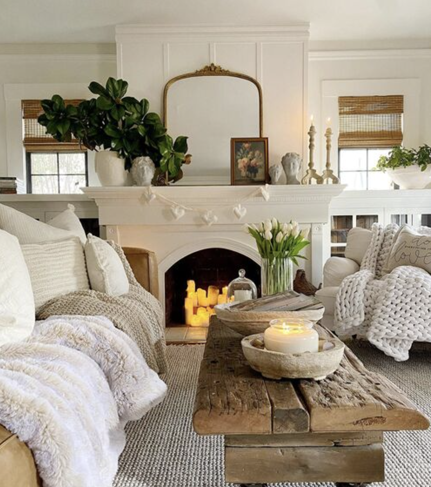 A large mirror above the mantel reflects light and instantly makes your living room feel brighter.