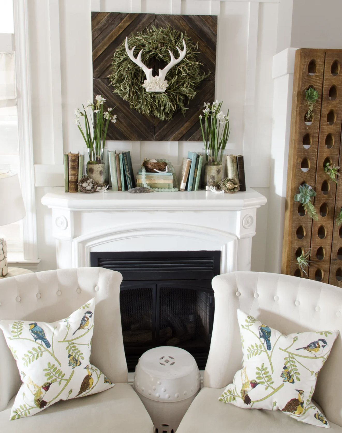 Spring fireplace mantel decor should feel light and alive.